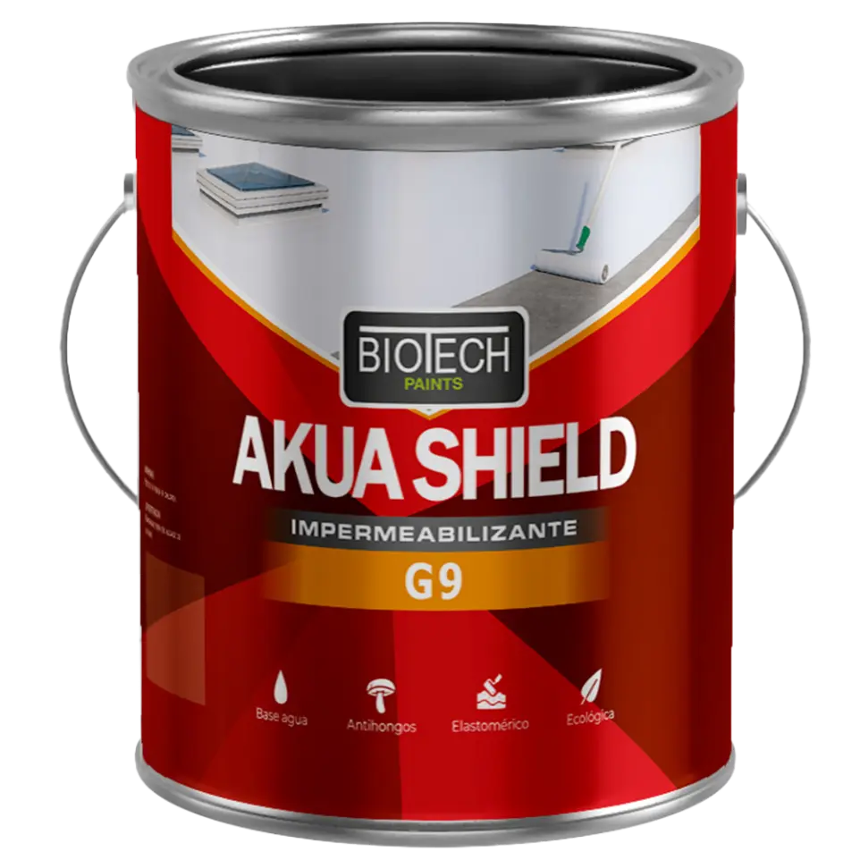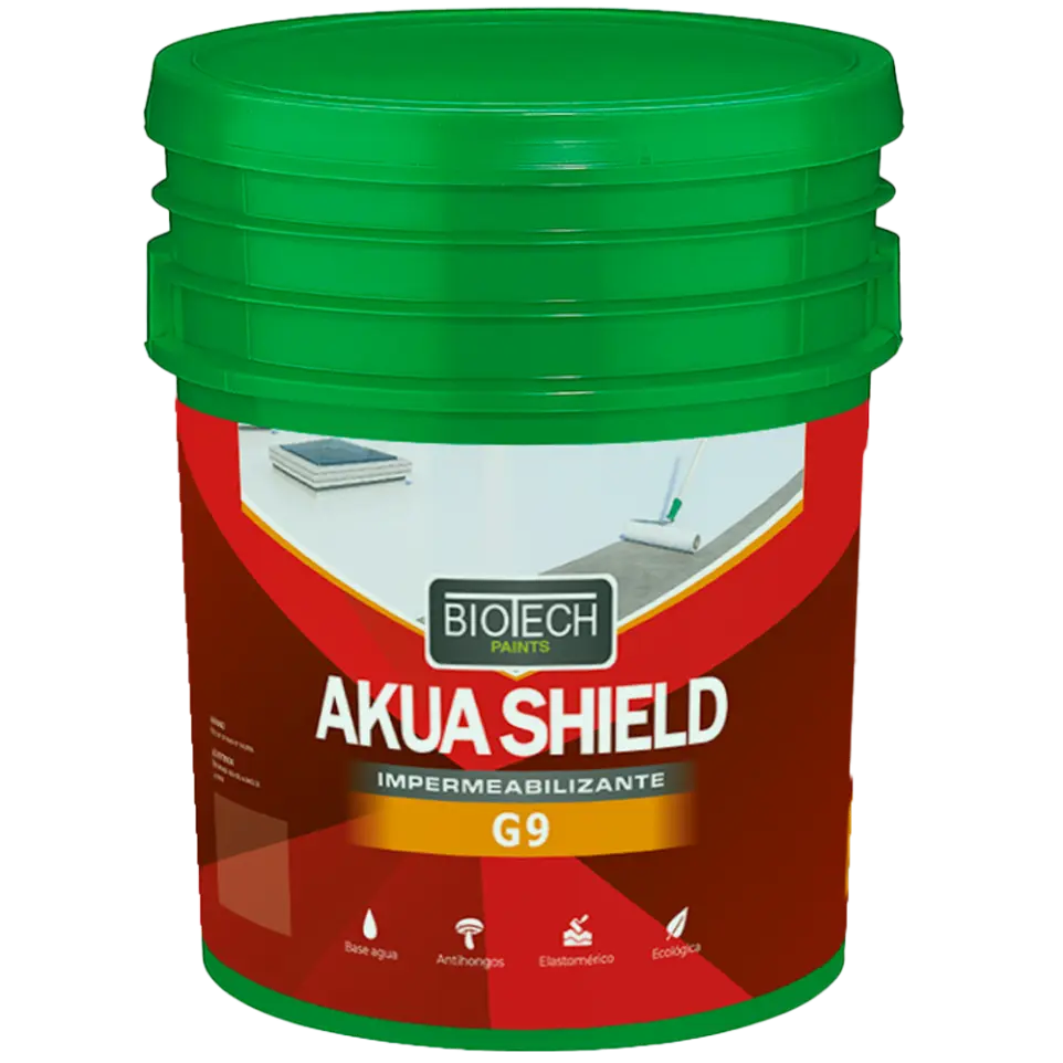 Akua Shield G9® es un impermeabilizante elastomérico premium formulado por BioTech Paints Guatemala, diseñado para ofrecer protección máxima contra humedad, radiación UV y empozamiento prolongado.